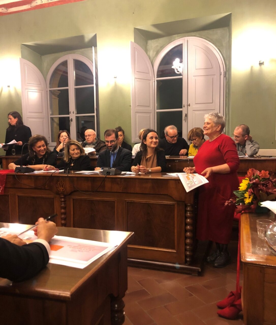 Giornata contro la violenza sulle donne Magione incontro in sala consiliare e torre illuminata di arancione Maghini (2)