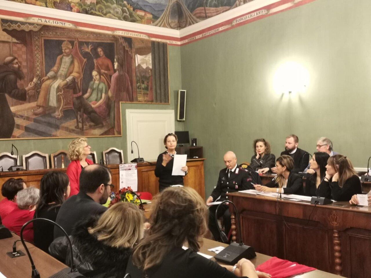 Giornata contro la violenza sulle donne Magione incontro in sala consiliare e torre illuminata di arancione Maghini (6)