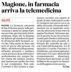 Verso il futuro, telemedicina e defibrillatore «Visto che la Regione ha definito gli standard di qualità all’interno delle farmacie – conclude la dirigenza – con il 2018 parte la sperimentazione per i servizi in telemedicina, quali elettrocardiogramma, holter pressorio e cardiaco, con la presenza di un infermiere professionista che, sempre dietro ricetta del medico curante, può operare per quello che sono le sue competenze». Presente anche, fuori dai locali, un defibrillatore da cui parte la chiamata al 118 appena viene acceso. L’Azienda speciale farmacie comunali (Afas) è presieduta da Virgilio Puletti.