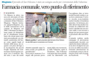 MAGIONE – L’Afas di San Feliciano dimostra che le farmacie comunali funzionano: producono utili per gli enti locali e sono un presidio importante per la salute e per la vita dei piccoli paesi. Grazie a tutto lo staff che vi lavora e ad Afas Perugia per la determinazione con cui in questi anni ha portato avanti questa esperienza di successo. Anche quest’anno, come sempre avvenuto dalla sua fondazione nel 2000, viene presentato un bilancio economico positivo di cui essere orgogliosi.